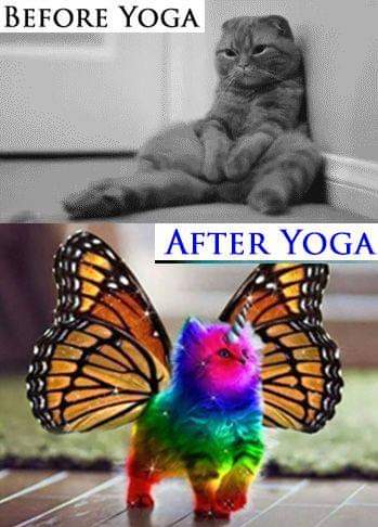 Szeretem ezt a képet. Vicces, és túlzásokba is esik, de valahogy mégiscsak érzékelteti a lényeget. Van olyan, hogy lehangolt vagy, földbe döngöl egy történés, egy helyzet. Rajtad áll, hogy hagyod-e magad ebben az állapotban. Vagy próbálsz esetleg kikerülni belőle? Változni és változtatni? Nem feltétlen gondolom azt, hogy az, aki jógázik, egyszer csak unikornisnak fogja magát gondolni, vagy színes szárnyú lepkének, de azt biztosan, hogy amit ma gondolsz magadról, vagy arról, amit elérhetsz, az holnap biztosan változni fog. A gödör alján, fáradtan, kétségbe esve nehezen tudod elképzelni, hogy lehet jobb is...